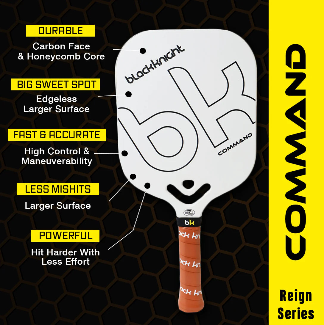The Black Knight Command Pickleball Paddle is proudly designed and quality-controlled in Canada and USA Pickleball approved, ensuring it meets the highest standards for pickleball games. Perfect for both beginners and professional players. This premium quality pickleball paddle is designed for force, speed and accuracy.