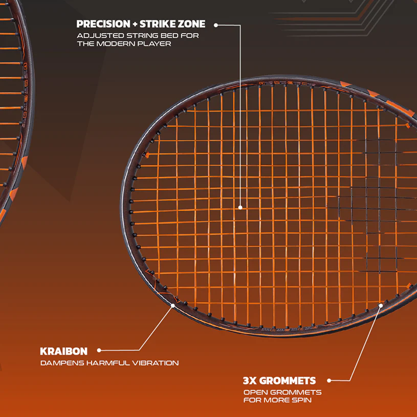 The Axis Team tennis racuqet features the revolutionary Precision + Strike Zone, which shifts the tightest part of the string bed higher to align with the strike zone of modern players. This innovative design enhances feel and ensures consistency on every shot.