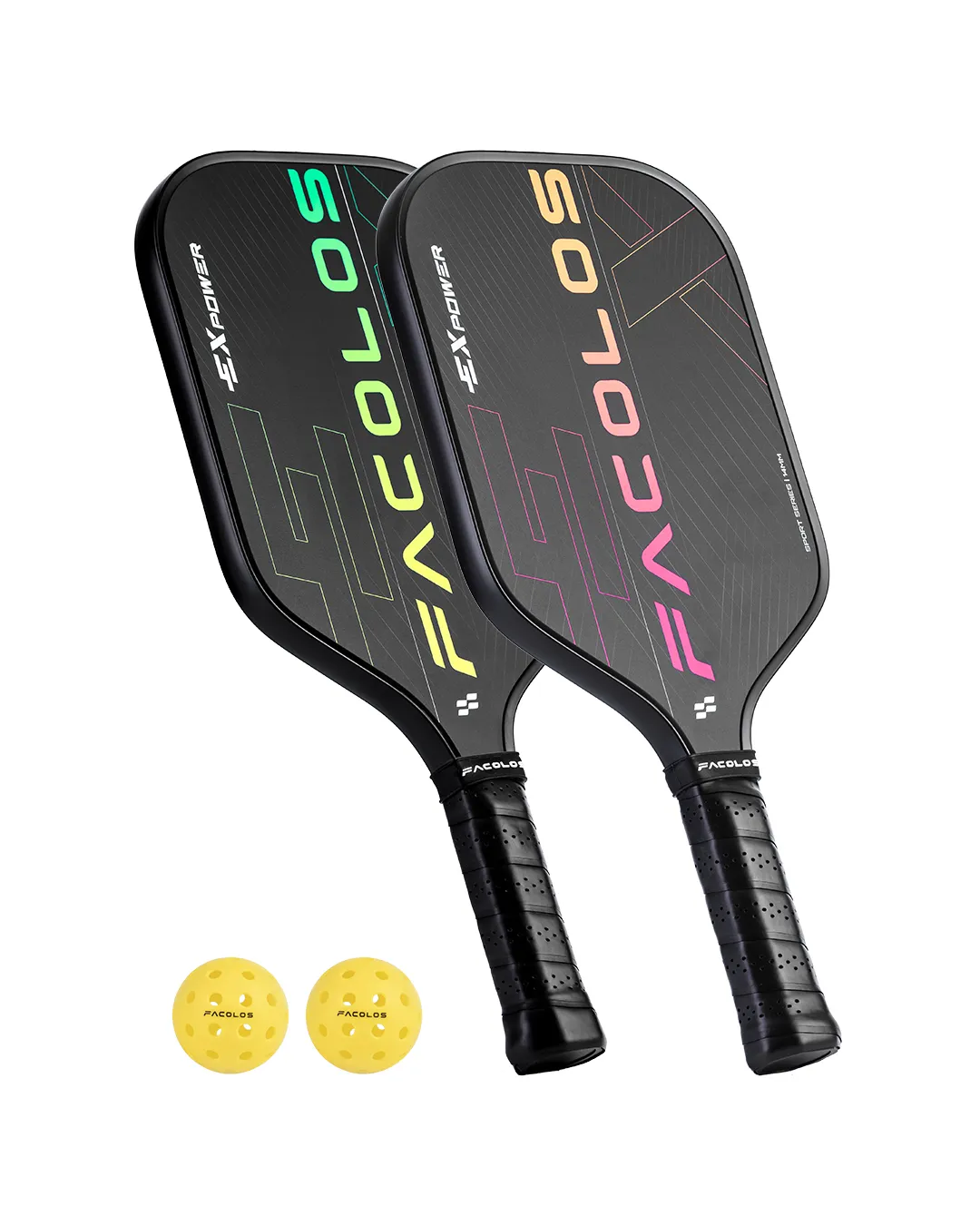 Facolos Sport Series – Expower 14mm Pickleball Paddle Set (Black) (2 Paddles + 2 Balls)