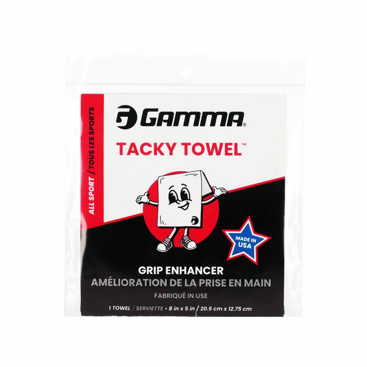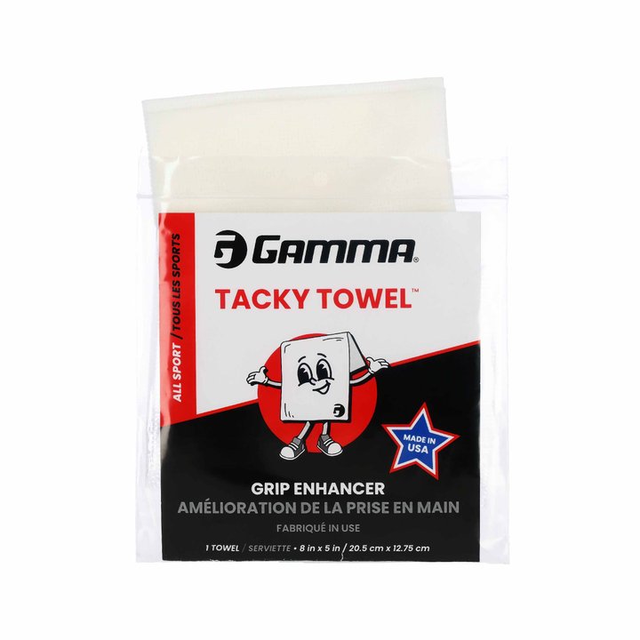 The GAMMA TACKY TOWEL is a beeswax permeated cloth towel that increases traction. The beeswax evaporates without leaving a residue. Ideal for racket sports, baseball, and golf.