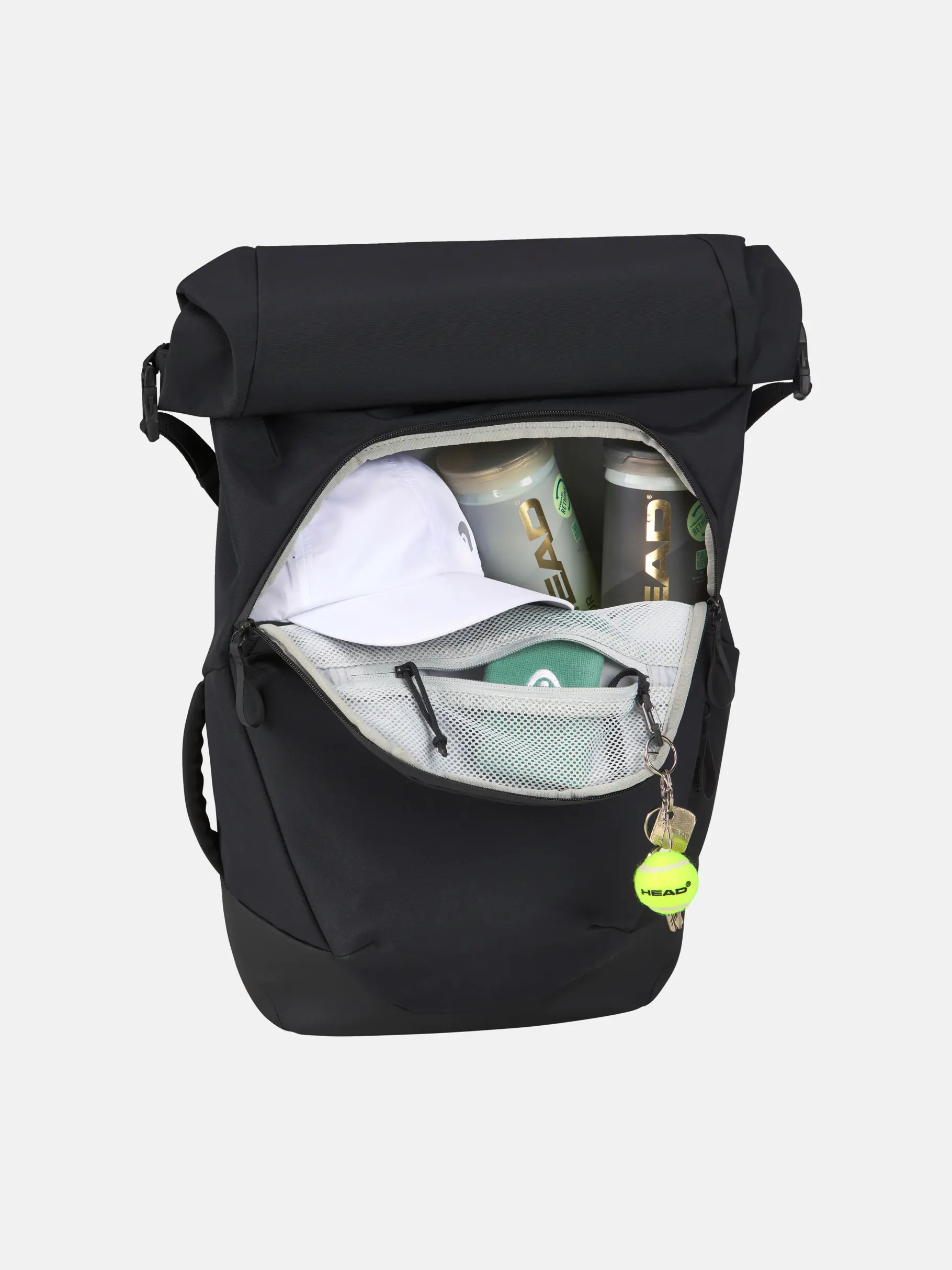 Whether you’re on the way to the courts, to a business meeting, or travelling, it’s easy to organize your belongings with the new PRO X RACQPACK backpack. Fashioned from recycled PET bottles, this is a sustainable and versatile choice with a rolltop design, different accessory pockets and a laptop compartment, along with a racquet compartment with CCT+ climate control technology that protects up to 3 racquets. Offered with an EVA backpack construction and adjustable chest buckles, this is a premium, comfortable backpack. This bag is an illustration of how HEAD recognizes its responsibility to be more sustainable and to help protect the planet, with the hangtag made from recycled paper and tied with hemp cord.