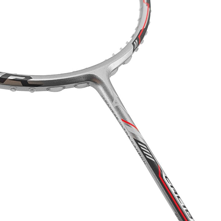 The graphite sheets are heated at a higher temperature to further eliminate the impurities during the initial manufacturing process. This results in a smoother more consistent coating that not only strengthens the frame but enhances the aerodynamics of the graphite thus increasing the racket's velocity.