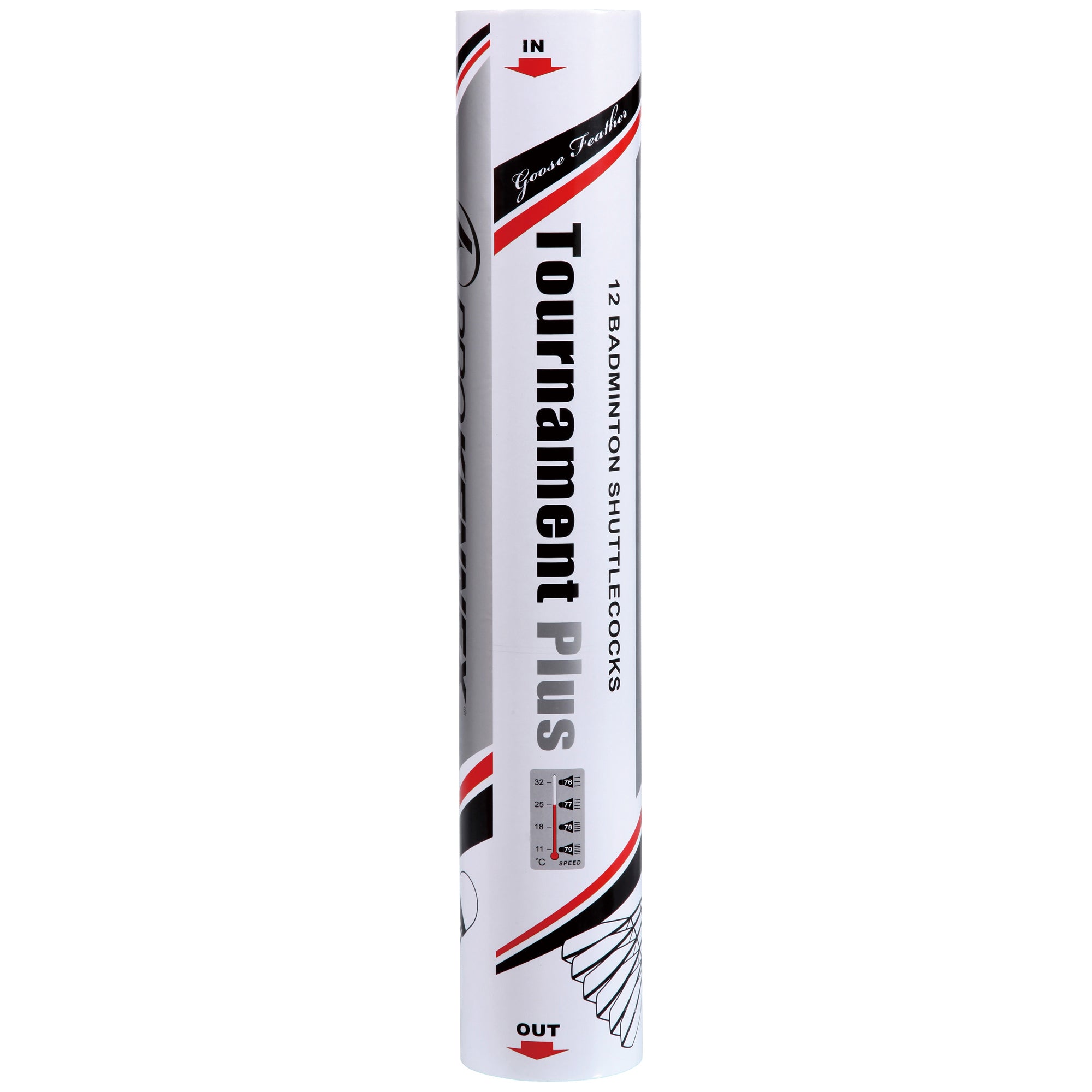 Tournament Plus is ProKennex second best grade of special selected goose feather using 23 steps from cutting, sizing, curving, weighting and 4 inspection stations to control carefully the quality of the feather to make sure the 16 feathers are the same so the durability, stability, flight and speed are consistent.