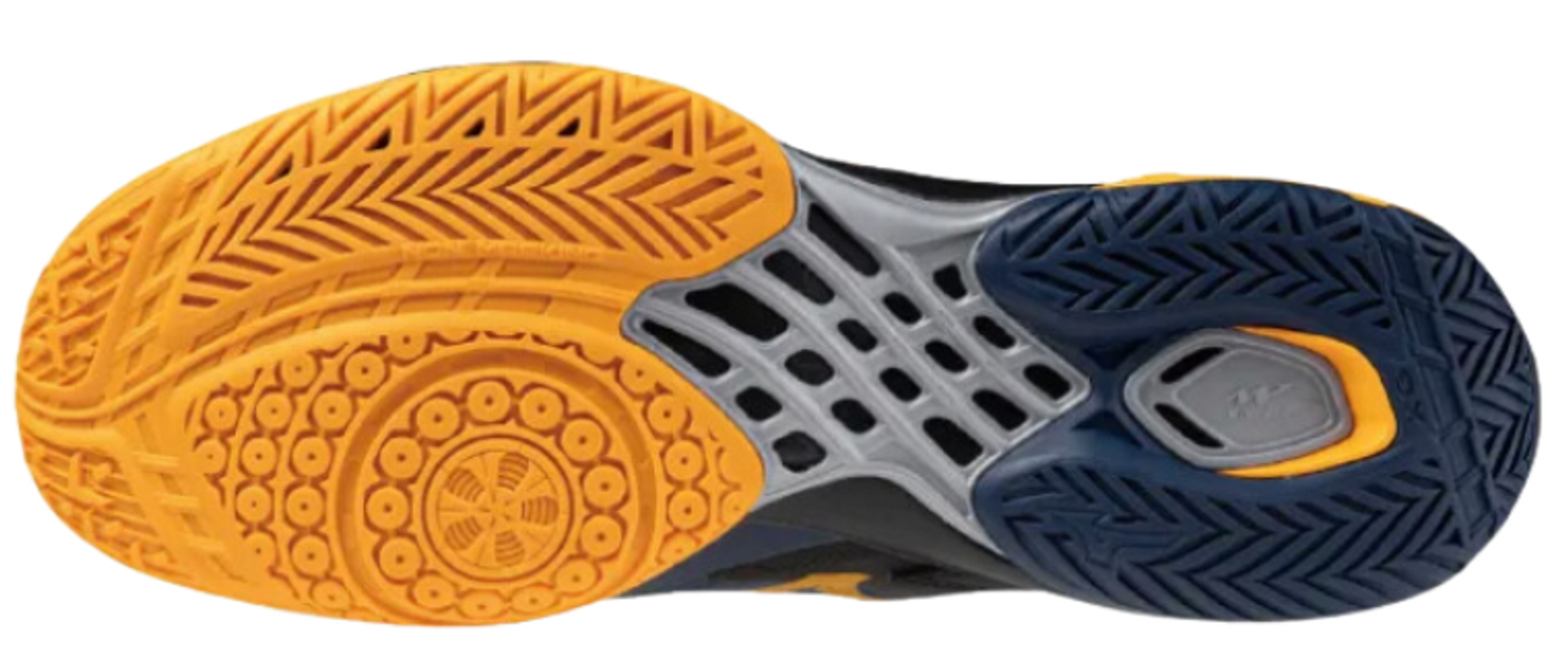 - Improved cushioning for lunges - In order to improve the shoe‘s feeling of firmness during lunges, the structure of the protruding area at the heel adopted for the WAVE FANG 2 of autumn/winter 2023 has been adapted and equipped in the WAVE CLAW style.