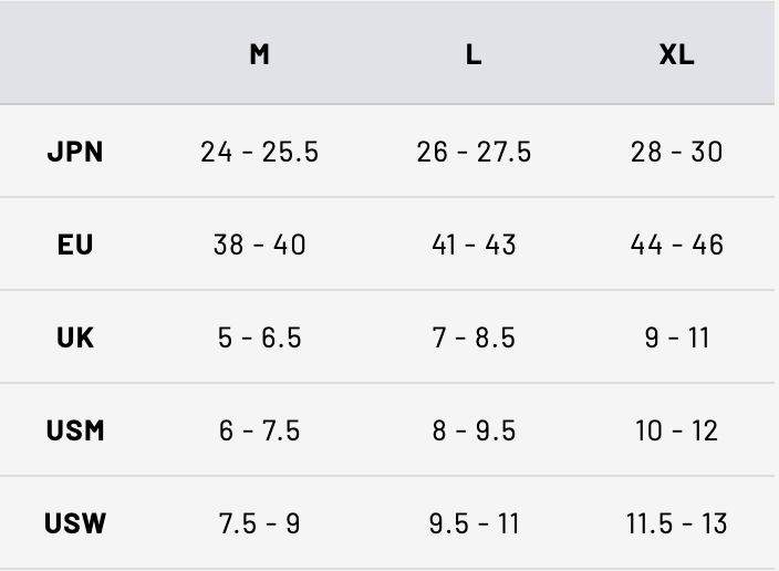 Size M: 24.0 cm - 25.5 cm