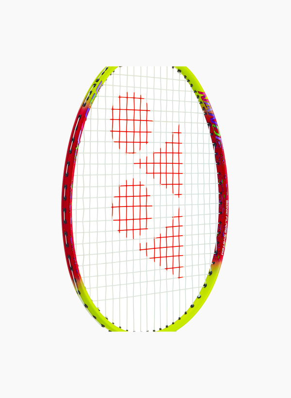 The Yonex NANOFLARE series is characterized by its head-light construct.Head-light frames are speedy and maneuverable. Badminton rackets in the Nanoflare series are built to launch the shuttle with speed, thanks to the SONIC FLARE SYSTEM which strategically lines high modular graphite material at the top and bottom of the frame for amplified repulsion performance. This badminton racquet allows badminton players to slice through the air and control the tempo as NANOFLARE frames are aerodynamic, giving every player an edge with a faster touch.