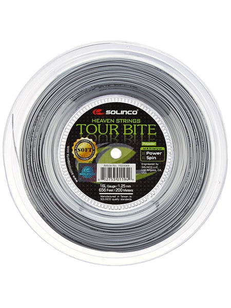 Tour Bite Soft is a softer high-performance and versatile polyester string that offers more comfort while generating extreme power and intense spin and bite.
