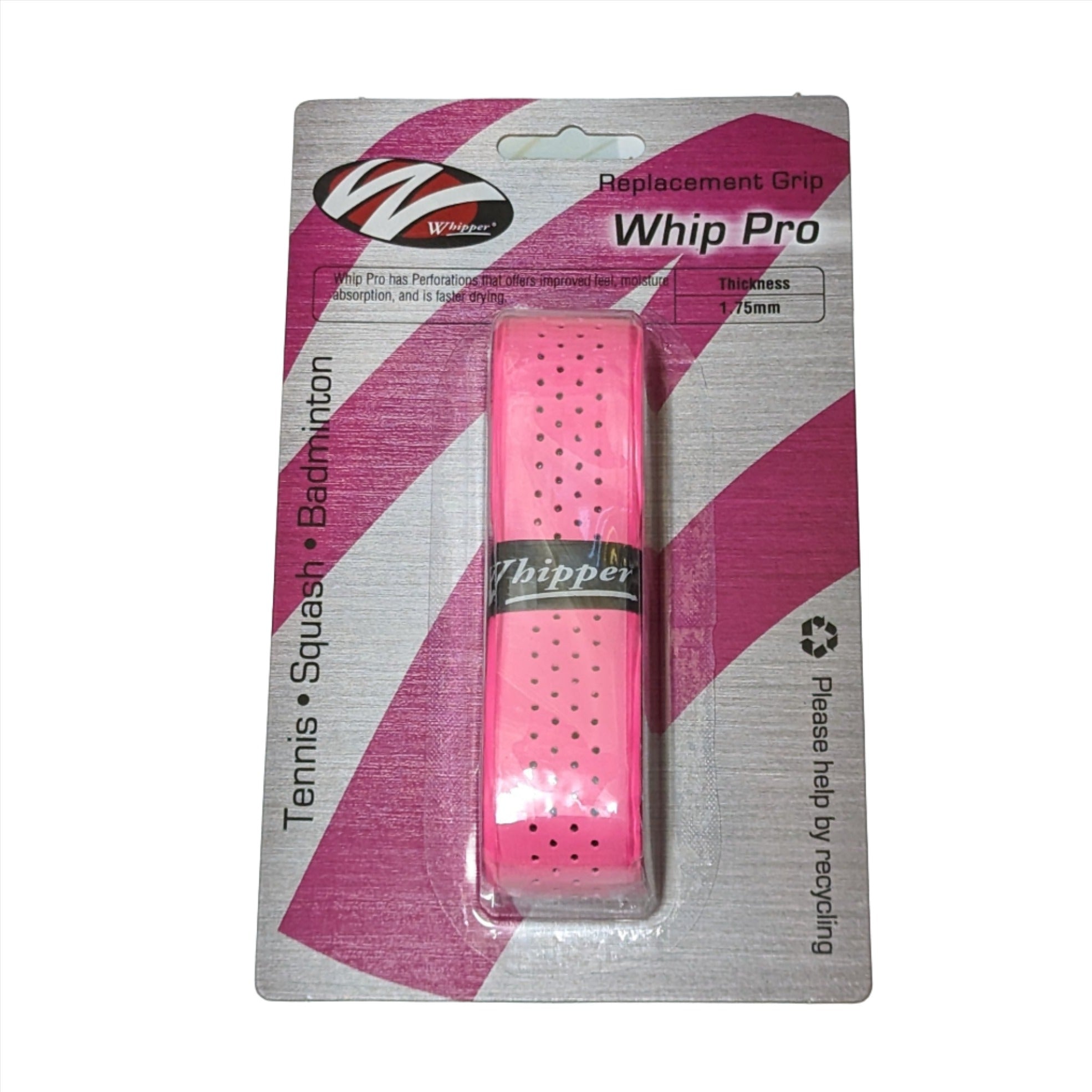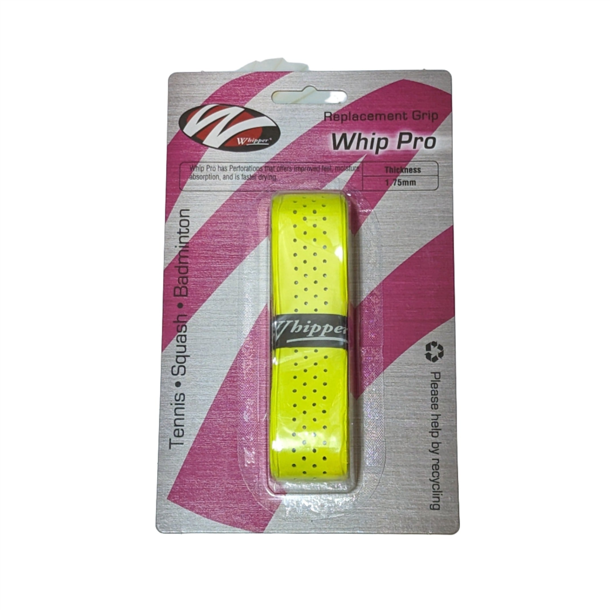 Whip Pro has Perforations that offers improved feel, moisture absorption, and is faster drying. Suitable for Badminton, Squash and Tennis.